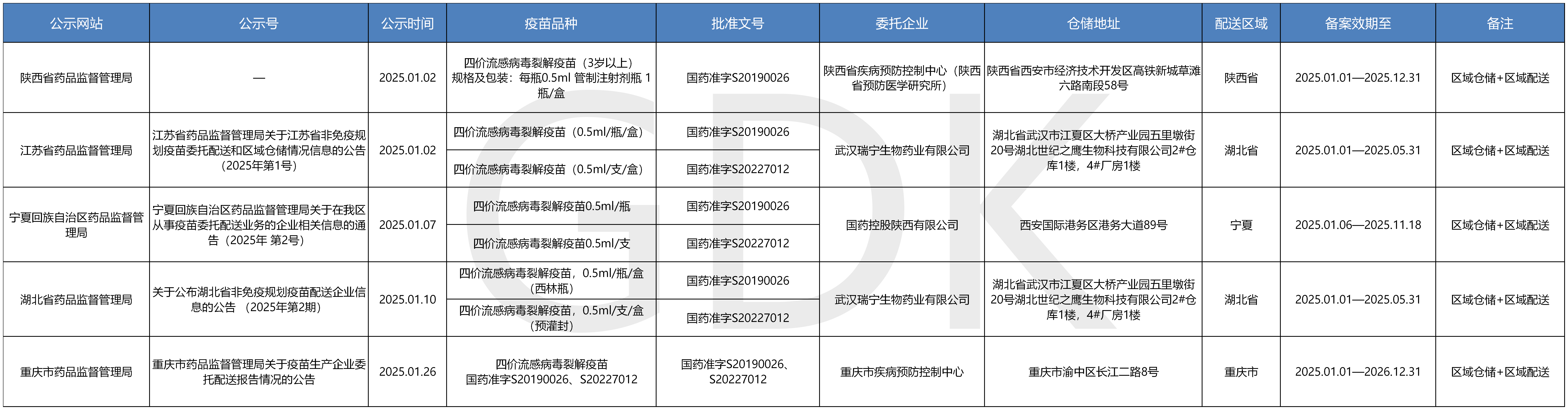 疫苗委托冷链储存、配送企业信息公开